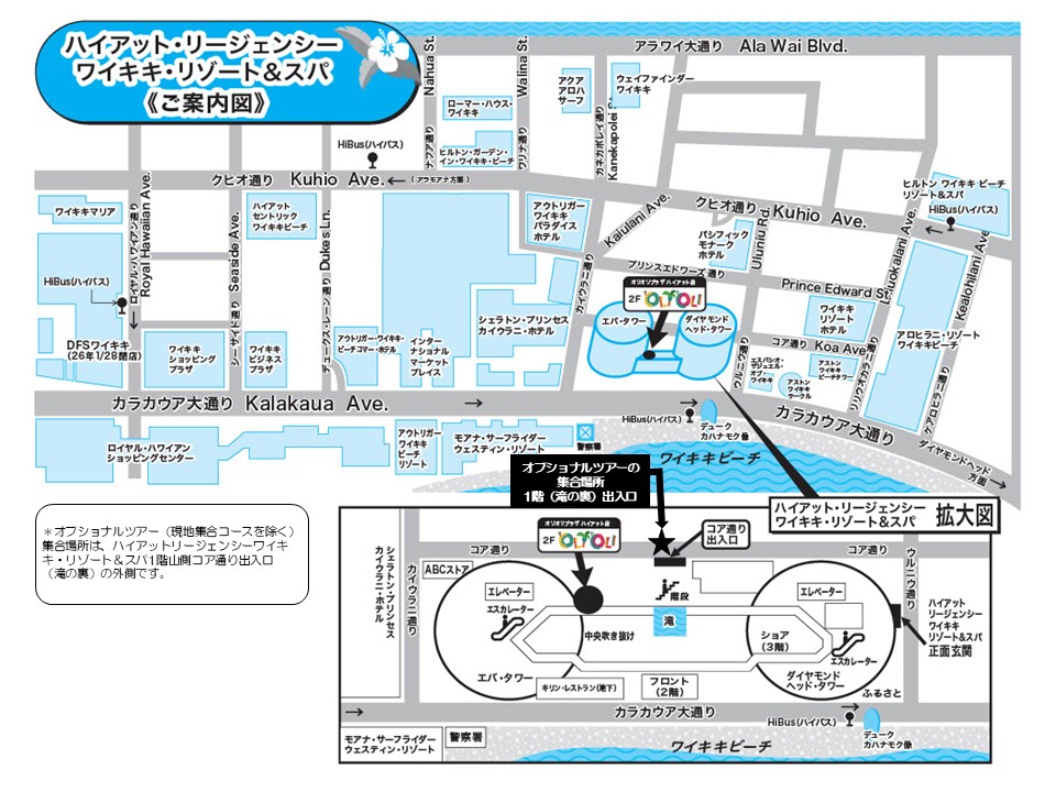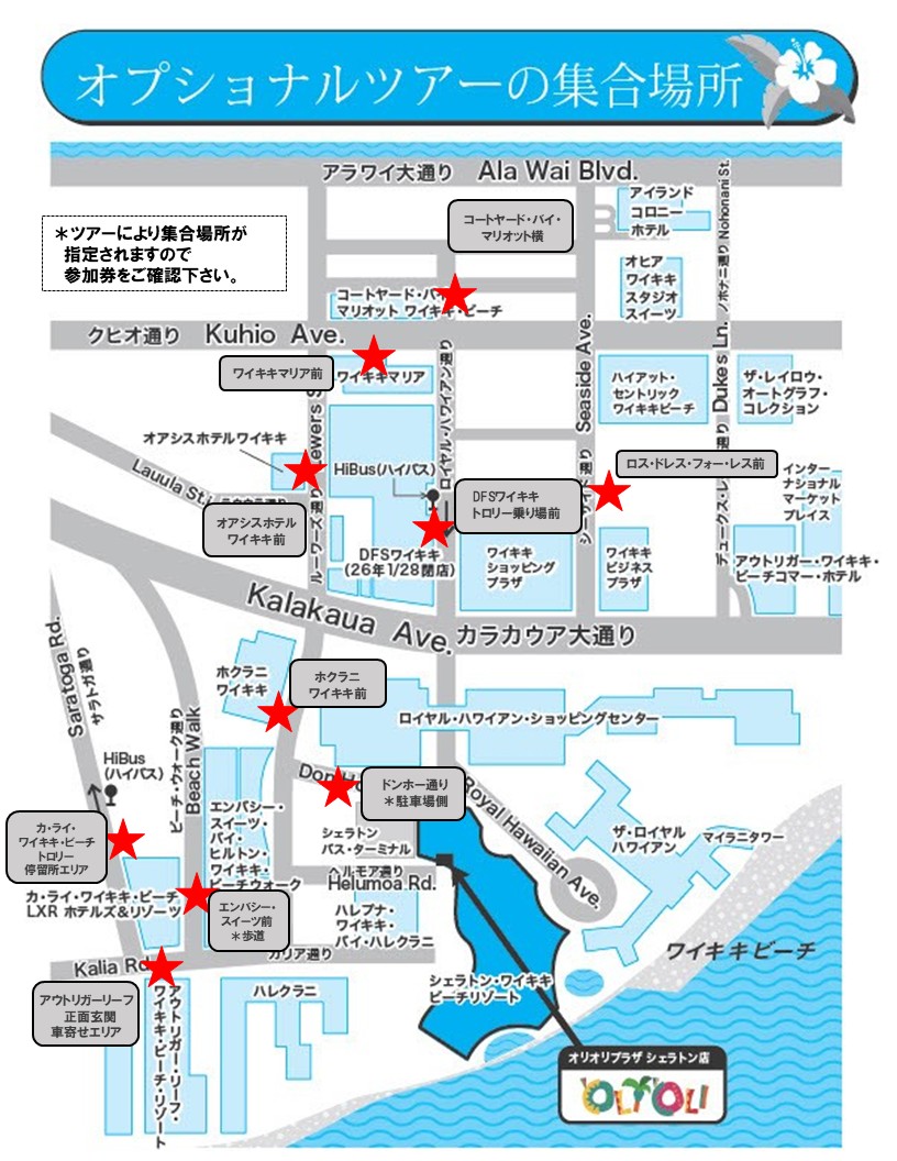 オプショナルツアーの主要な集合場所