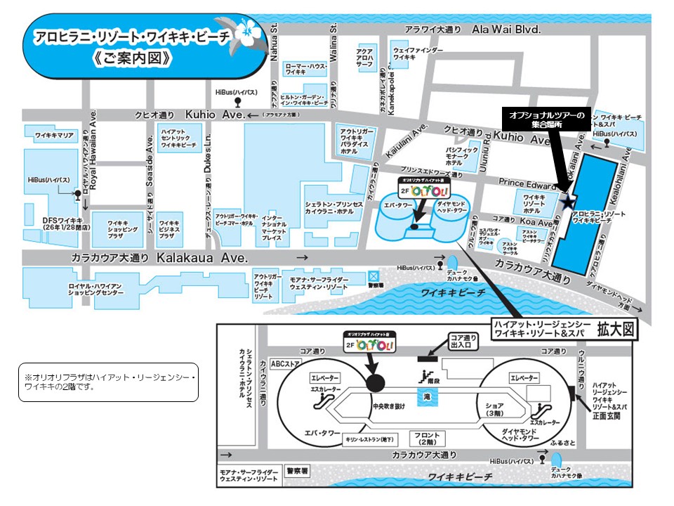 ご参加されるオプショナルツアーによりご集合場所が異なります。お申し込みされたオプショナルツアーのバウチャーまたは参加券(Eチケット)にて、ご集合場所を必ずご確認ください。またパレードや工事により変更になる場合もございますので、ご到着後に再確認されることをお勧めいたします。